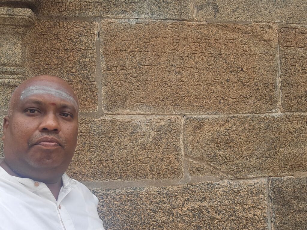 மன்னியூர் மன்னீசுவரர் கோயில் வடக்கு சுவரில் பொறித்த 5 வரிக் கல்வெட்டு.